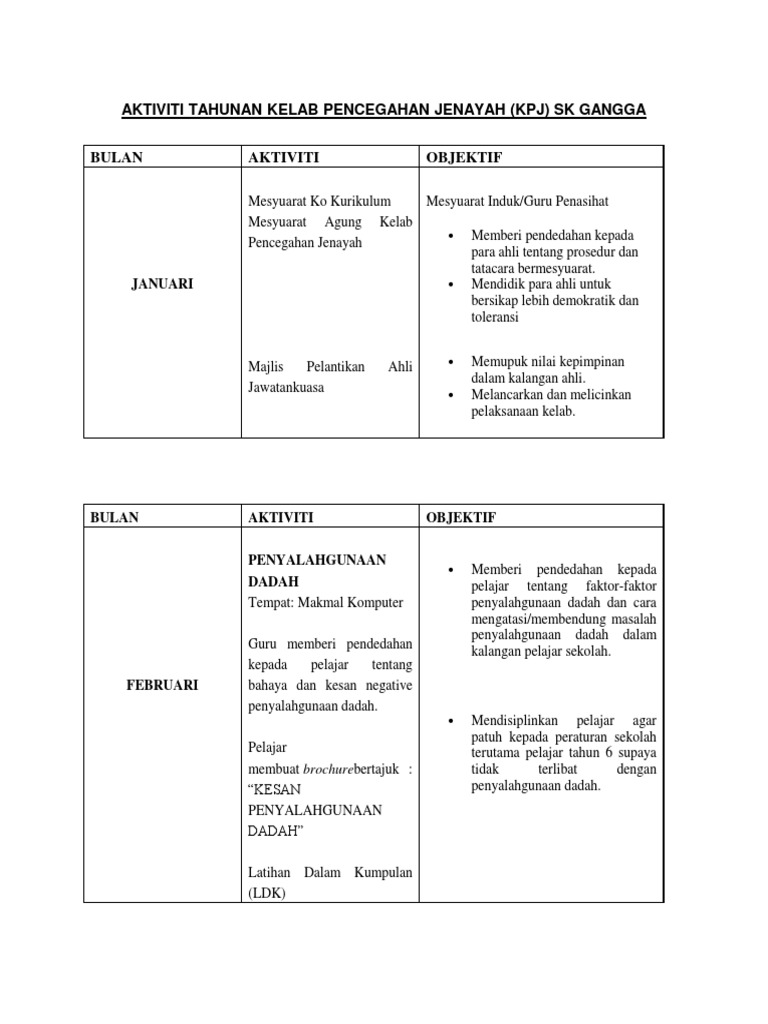 Laporan Aktiviti Kelab Pencegahan Jenayah Sekolah Kebangsaan Taman Kosas Ampang Pdf Document