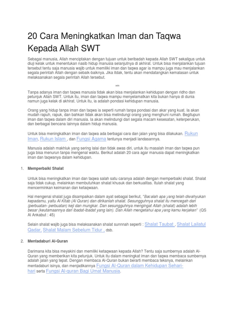 20 Cara Meningkatkan Iman Dan Taqwa Kepada Allah Swt