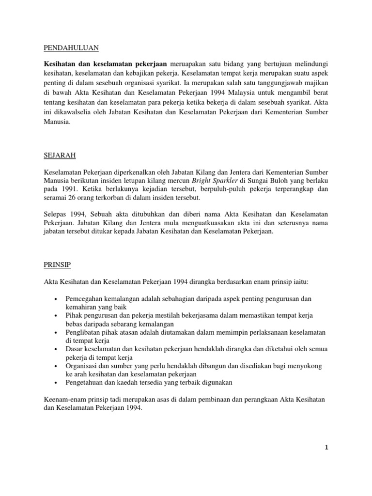 Keselamatan Kesihatan Perkerja Keselamatan Dan Kesihatan Pekerjaan Di Malaysia