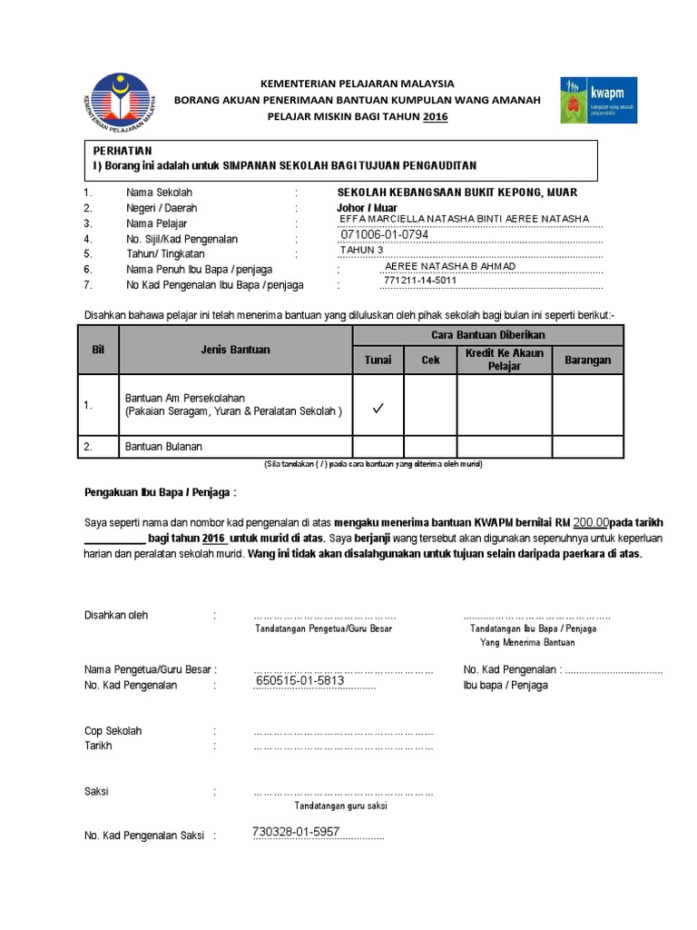 Borang Akuan Penerimaan Bantuan Kwapm 2020