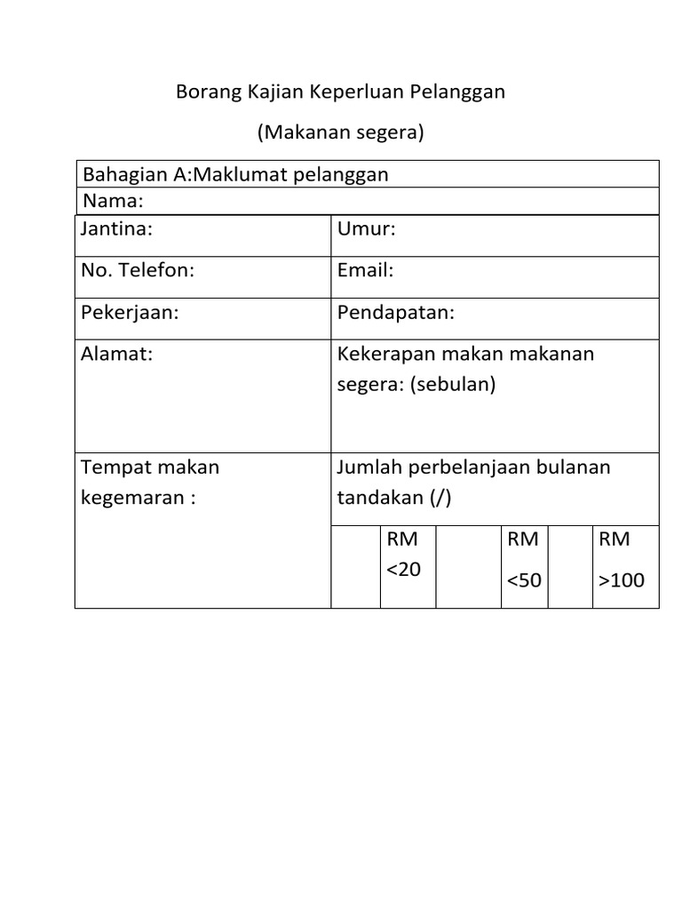 Borang Kajian Keperluan Pelanggan Docx Borang Kajian Keperluan Pelanggan Bahagian A Maklumat Pelanggan Nama Jantina Lelaki Perempuan Umur No Course Hero