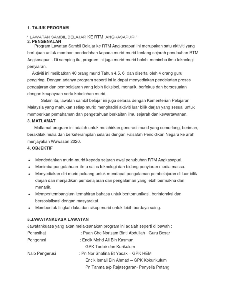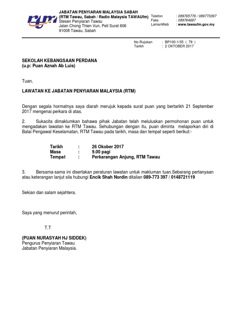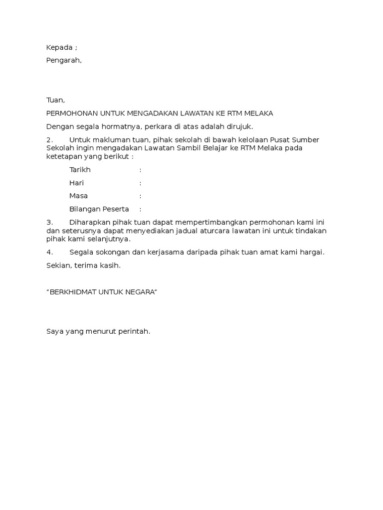 Contoh Surat Permohonan Lawatan Ke Rtm