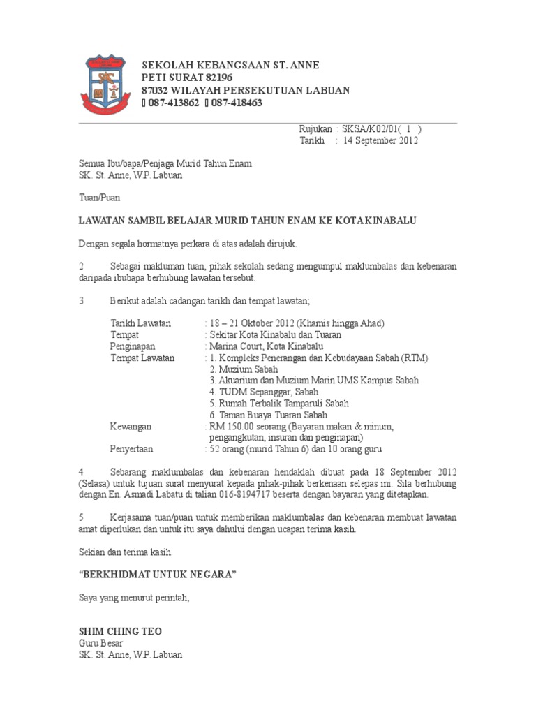 Surat Rasmi Lawatan Contoh J Kosong W