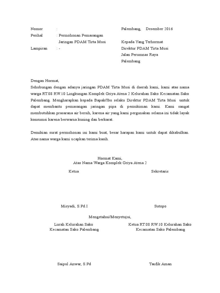 Contoh surat usulan dan berita acara lengkap pengajuan paw bpk desa salah satu prosedur penggantian anggota bpk kampung atau desa yang mengundurkan diri adalah dengan mengadakan musyawarah tingkat bpk dusun dan kampung yang dituangkan dalam bentuk surat usulan pemberhentian dan pengangkatan anggota baru pengganti bpk dan berita acara musyawarah pergantian anggota bpk yang diselengkaran di. 2 hari bagi permohonan individu 7 hari bagi permohonan berkelompok. Contoh surat rasmi permohonan contoh surat rasmi permohonan kerja contoh surat rasmi permohonan studi banding contoh surat rasmi permohonan peralatan sukan contoh surat rasmi permohonan contoh surat rasmi kerajaan contoh surat rasmi melalui contoh surat rasmi terkini contoh surat rasmi pertukaran alamat contoh surat rasmi perletakan jawatan contoh surat rasmi permohonan kerja contoh. Surat permohonan pemasangan meter di kuarters yang ni ofis buatkan hampa p hantaq saja 4.