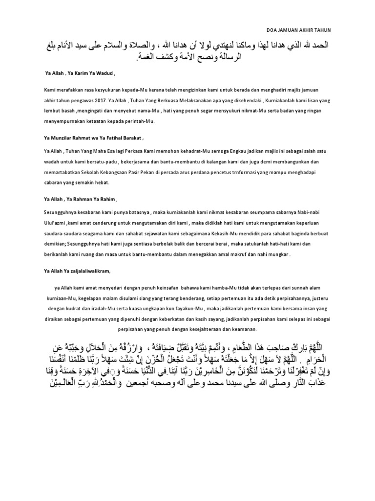 Doa Jamuan Akhir Tahun Docx