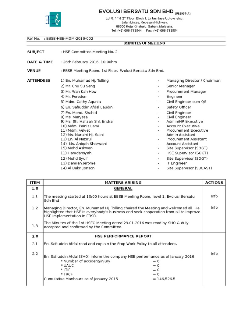 Hse Monthly Meeting February 16 Business