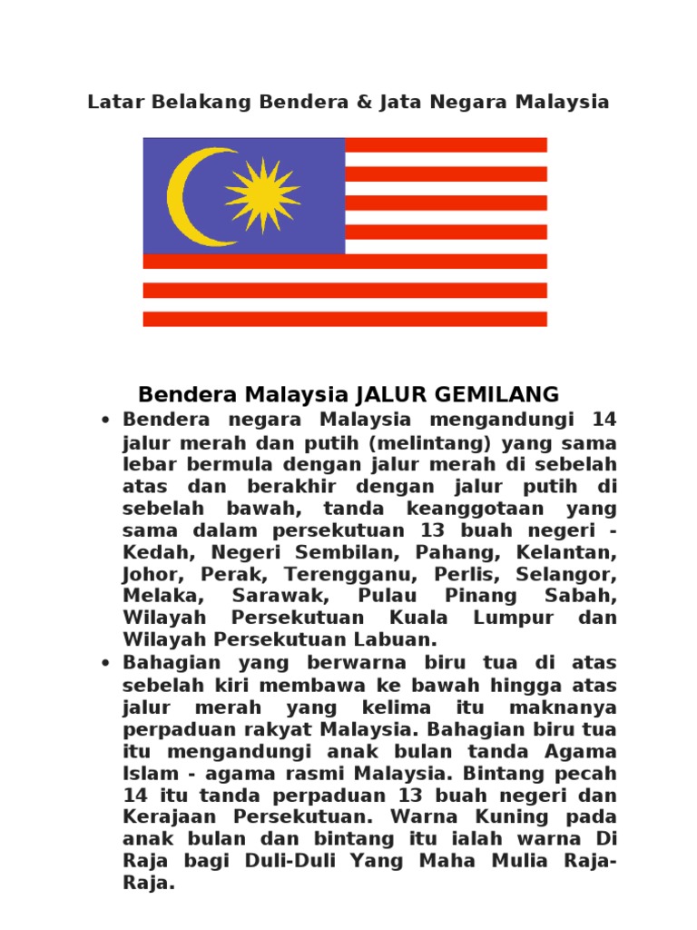 Bendera Malaysia Mengandungi 14 Jalur Merah Dan Putih