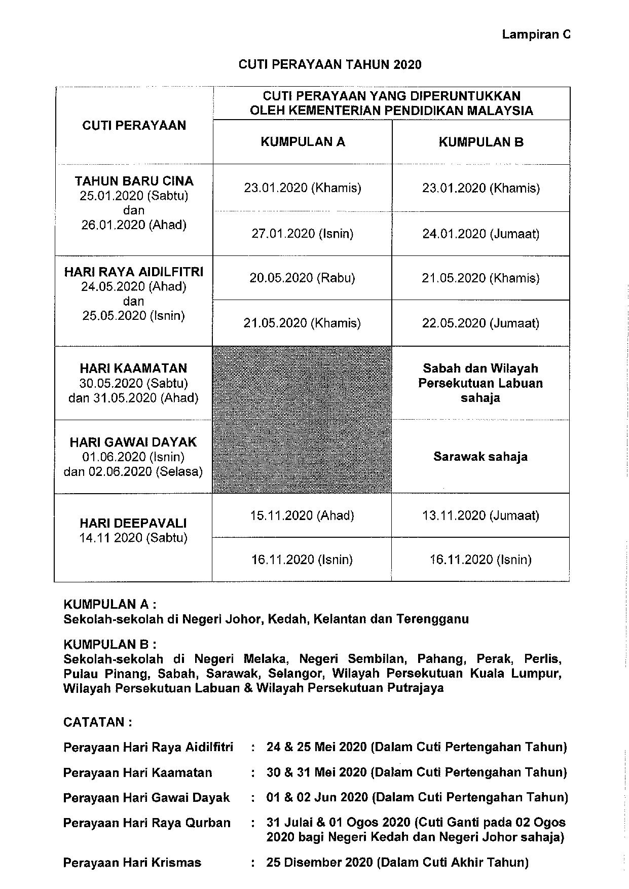 Kalendar 2020 Cuti Umum Dan Cuti Sekolah Malaysia Preschool Writing Malaysia Calendar