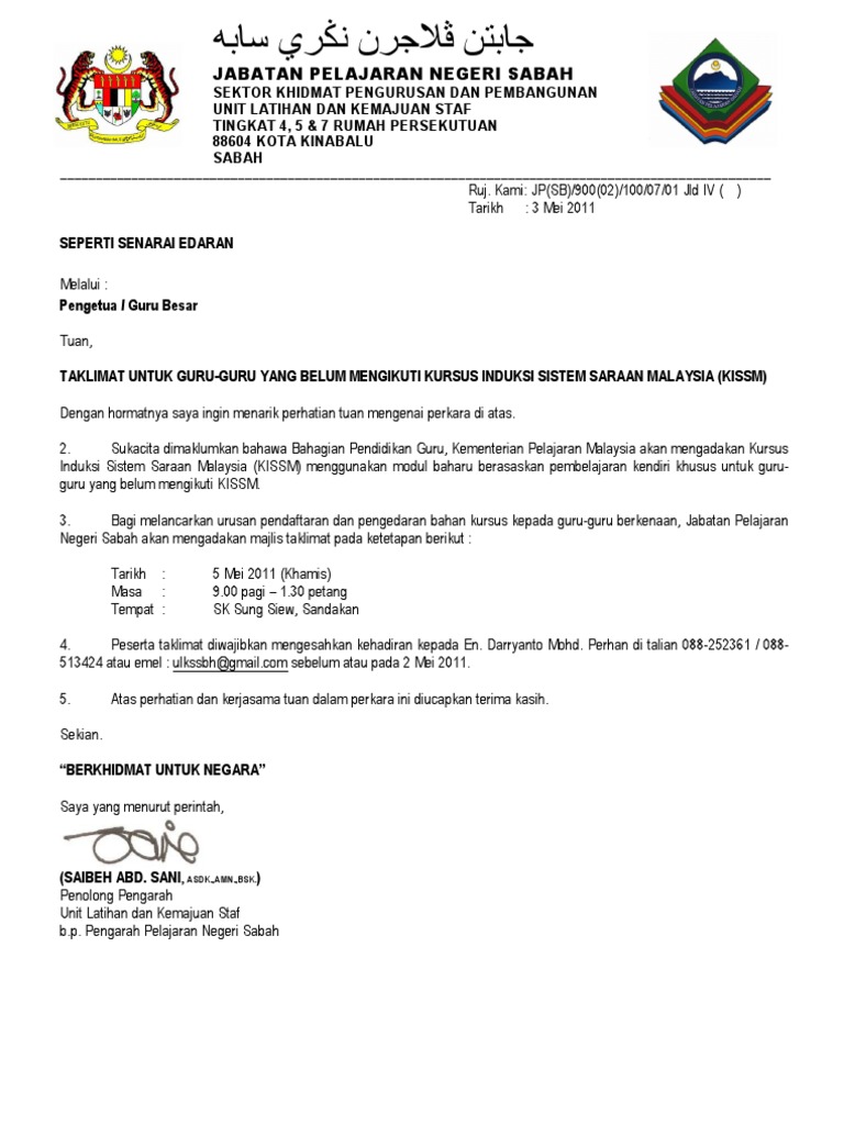 Jabatan Pelajaran Negeri Sabah Seperti Senarai Edaran