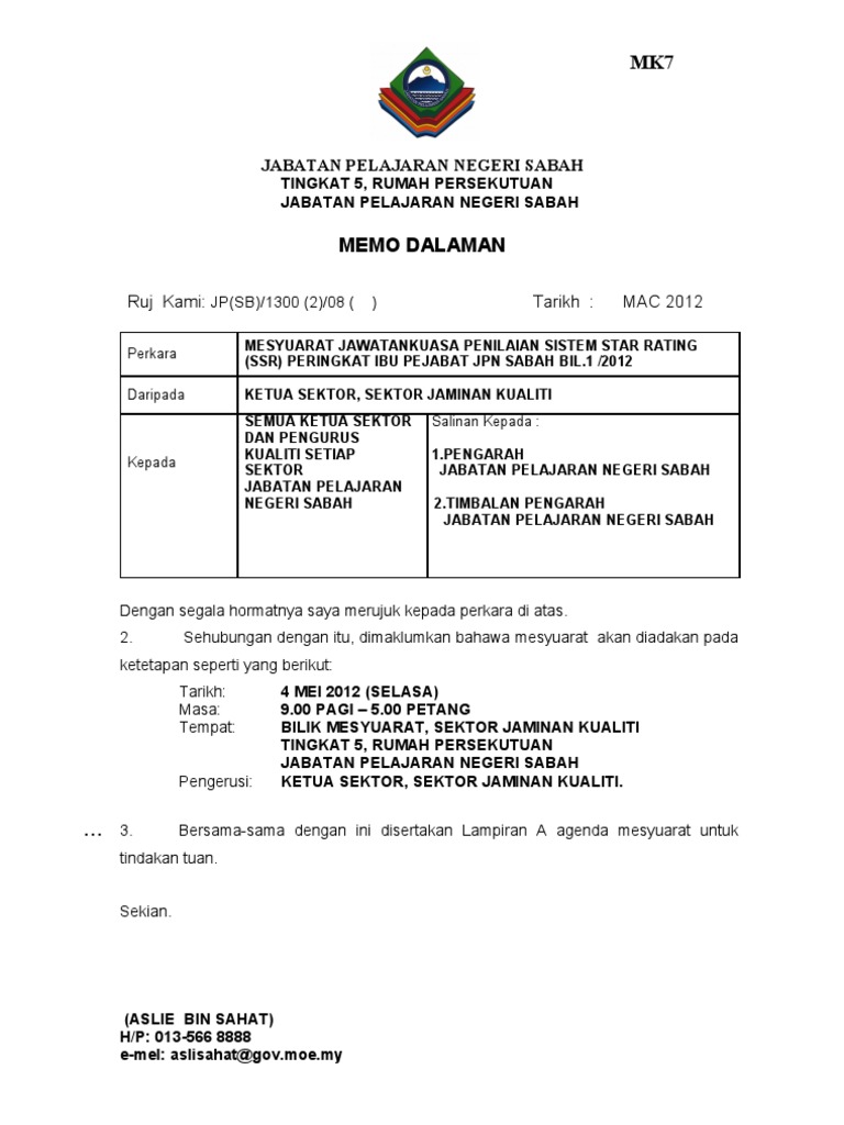 Ruj Kami Tarikh Mac 2012 Jabatan Pelajaran Negeri Sabah