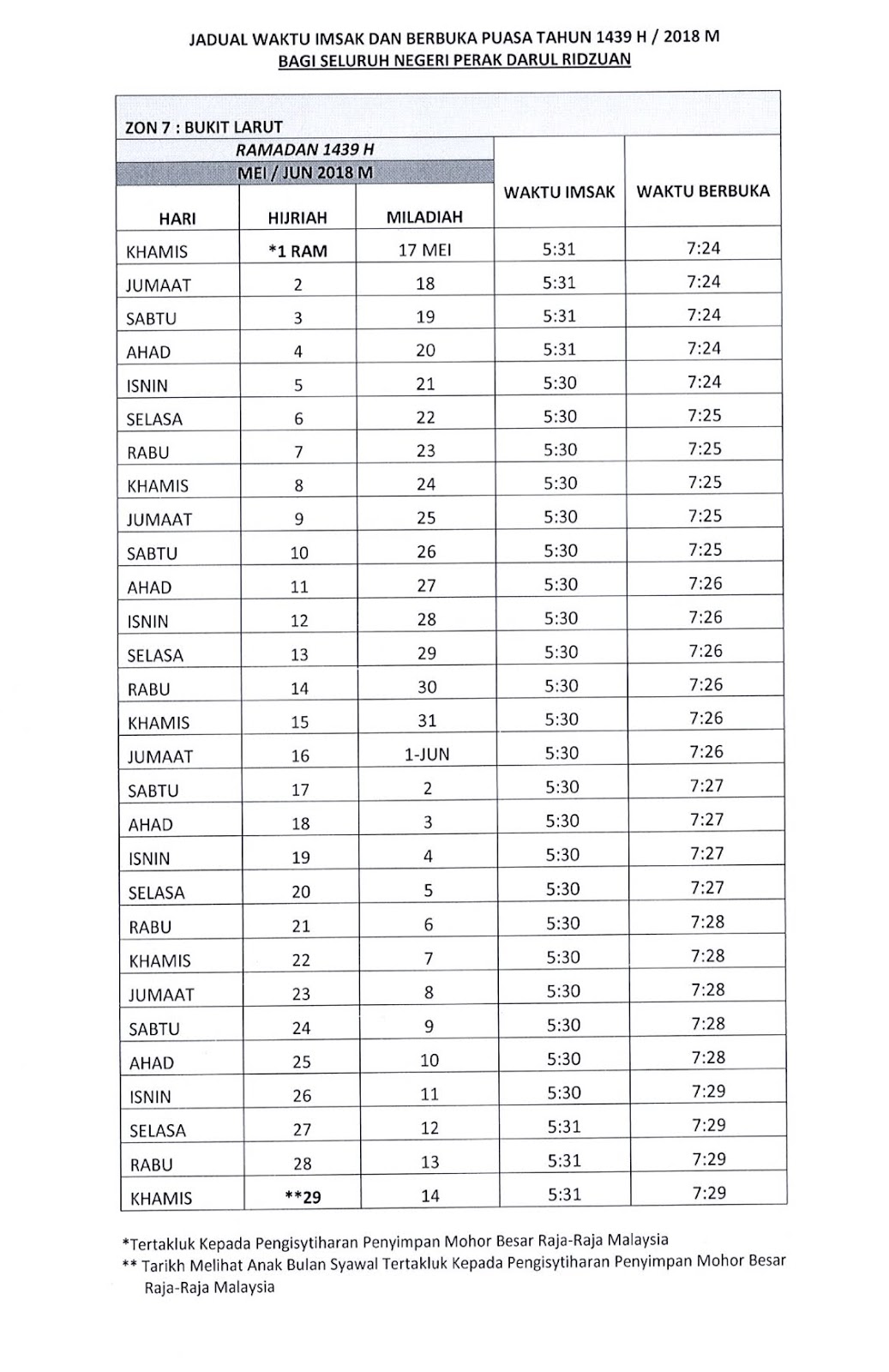 Jadual Berbuka Puasa Dan Imsak Negeri Perak 2018 1439h