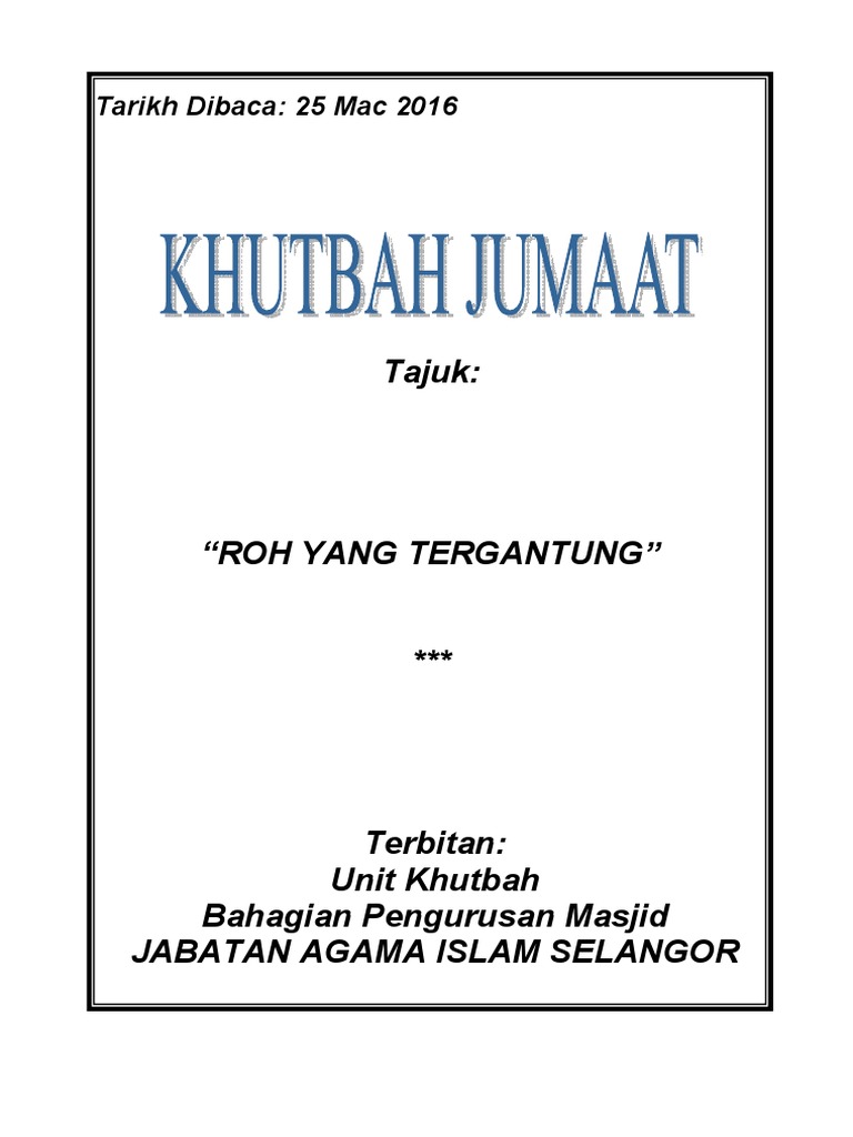Khutbah jumaat jais rumi. Muhasabah di penghujung ramadan. Ingatlah bahawa segala amal perbuatan kita akan disoal oleh allah swt di. Generasi muda harapan agama jabatan agama islam selangor 3 sekarang tetap merupakan tiang atau pasak bagi kebangkitan sesuatu umat. Diwajibkan ke atas kamu untuk berpuasa sebagaimana diwajibkan ke atas kaum kaum terdahulu sebelum.