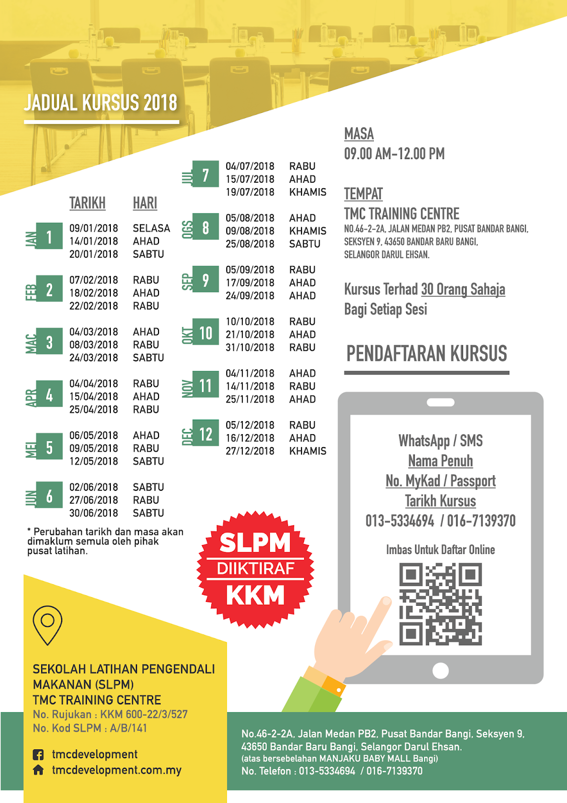 Jadual Kursus Latihan Pengendali Makanan Ipoh Call 018 2434667 Aks Kkm Moh Perak Ipoh Seriiskandar Raymondho Slpm Lpm Halal Periodic Table Diagram