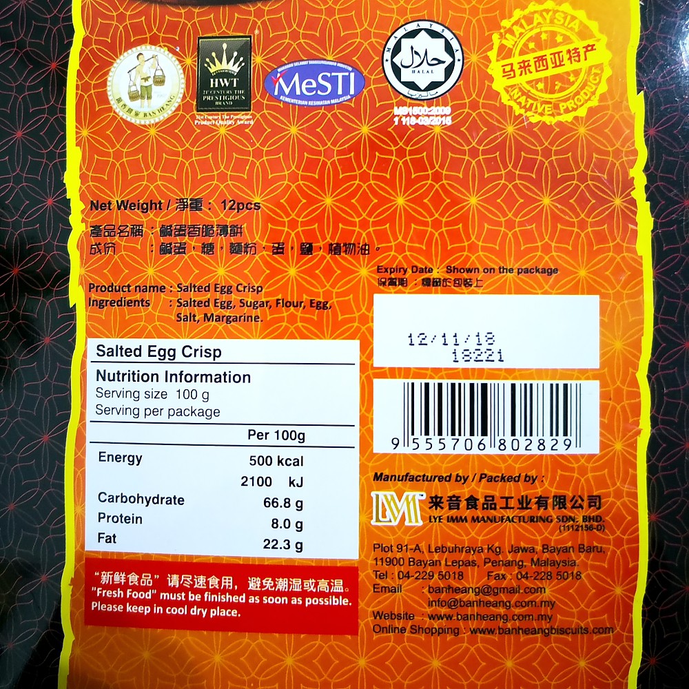 Ban Heang Salted Egg Crisp 鹹蛋香脆薄饼 By Penangtogo Shopee Malaysia