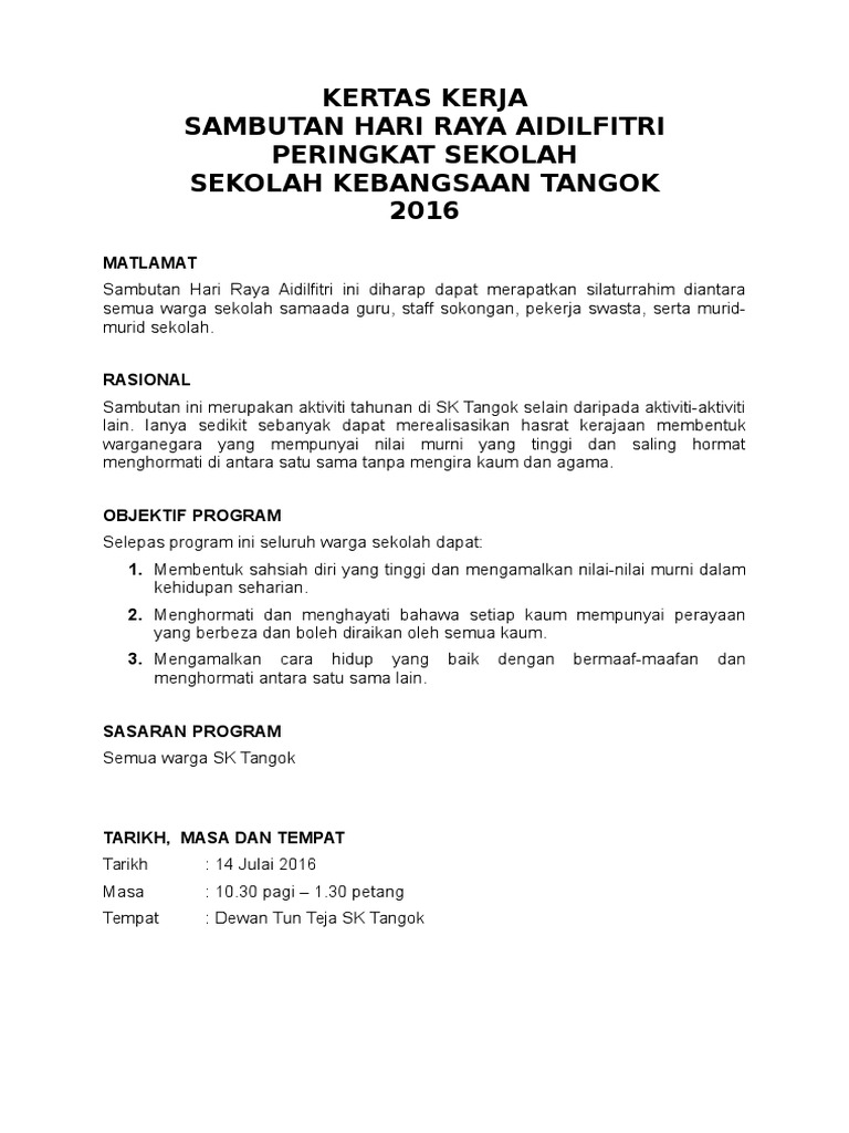 Doc Kertas Kerja Sambutan Aidil Fitri Dan Jamuan Hari Raya 2014 New Suziela Abdul Rahman Academia Edu