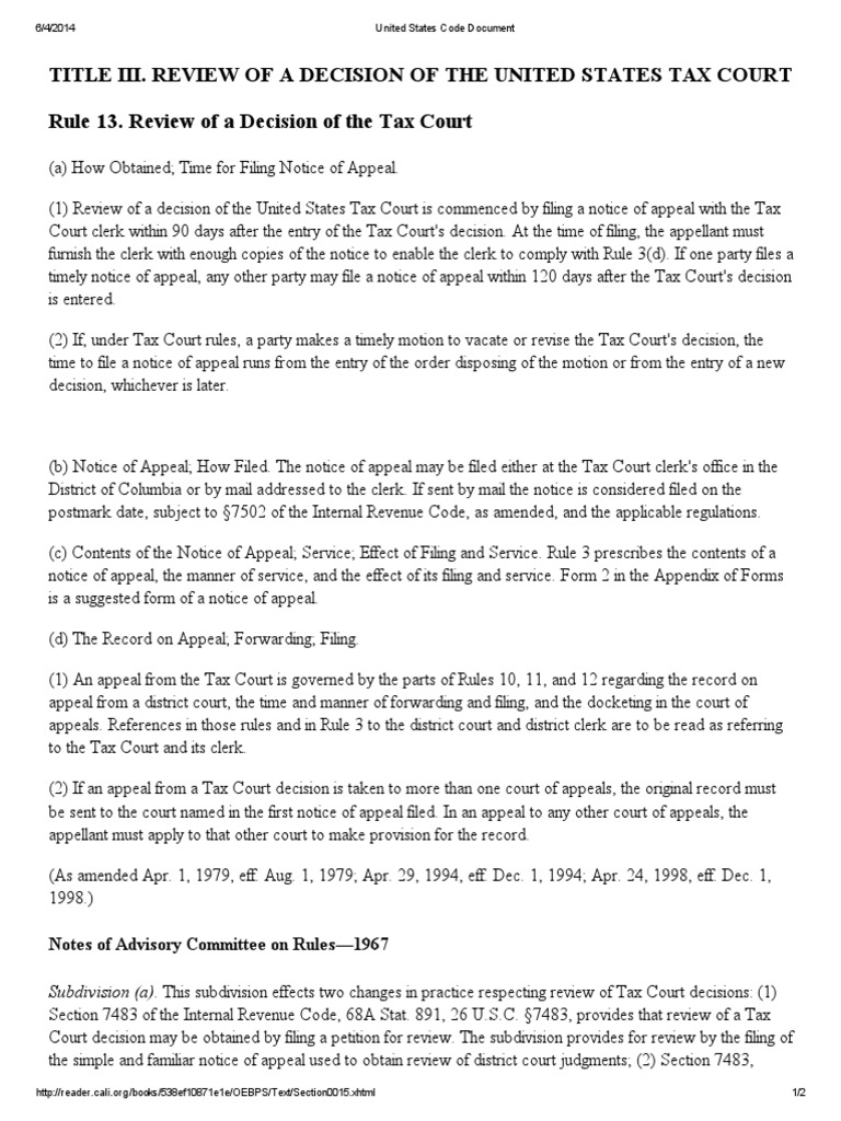 United States Code Document Review Of A Decision Of The United States Tax Court United States Tax Court United States Code