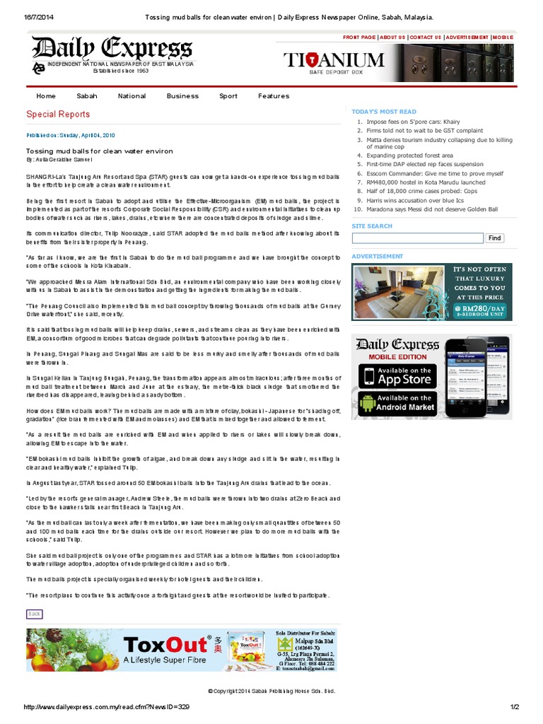 Tossing Mud Balls For Clean Water Environ Daily Express Newspaper Online Sabah Malaysia Pdf Water Nature