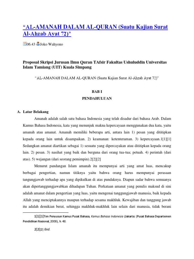 Al Amanah Dalam Al Quran Suatu Kajian Surat Al Ahzab Ayat 72