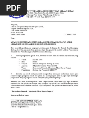 Contoh Surat Rasmi Permohonan Mengadakan Program Rasmi O