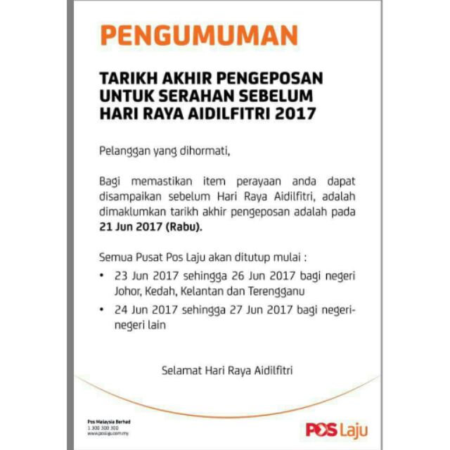 Tarikh Akhir Pengeposan Serahan Sebelum Hari Raya Aidilfitri 2017 About Me Blog Small Biz Business Travel