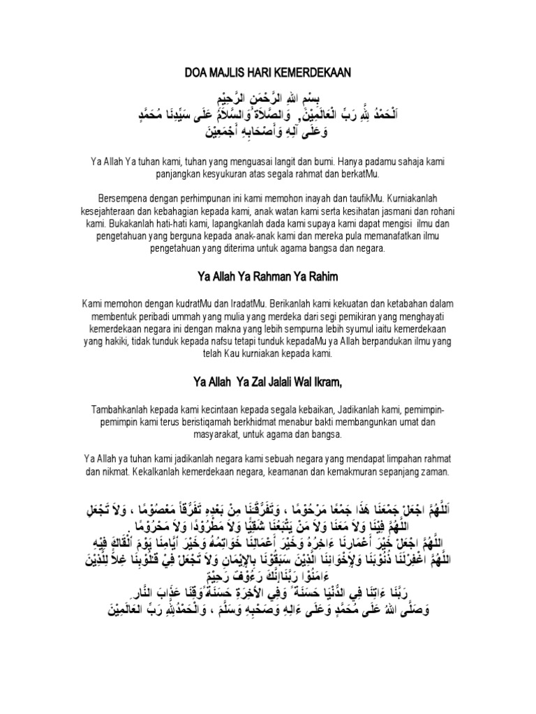 Doa Sambutan Bulan Kemerdekaan Pdf Document