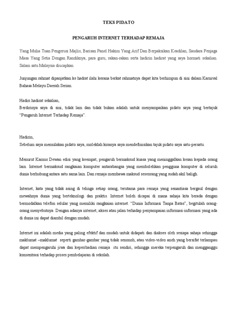 Teks pidato bahasa melayu remaja. Namun sebelum ledakan hujah menghujani sesisi dewan mohon izin untuk melakukan dua bentuk pendefinisian terhadap mauduk pidato saya iaitu secara literal mahupun secara leksikal. Pembentukan generasi patriotik pencapaian. Remaja berwawasan aspirasi negara begitulah indahnya mauduk pidato yang bakal menitip di bibir saya. Contoh teks pidato.