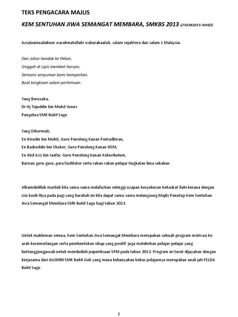 Skrip Mc Mjlis Penutup Kem Motivasi Tingkatan Lima 2013