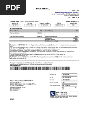 Malaysia Unifi Bill Templetes Invoice Debits And Credits
