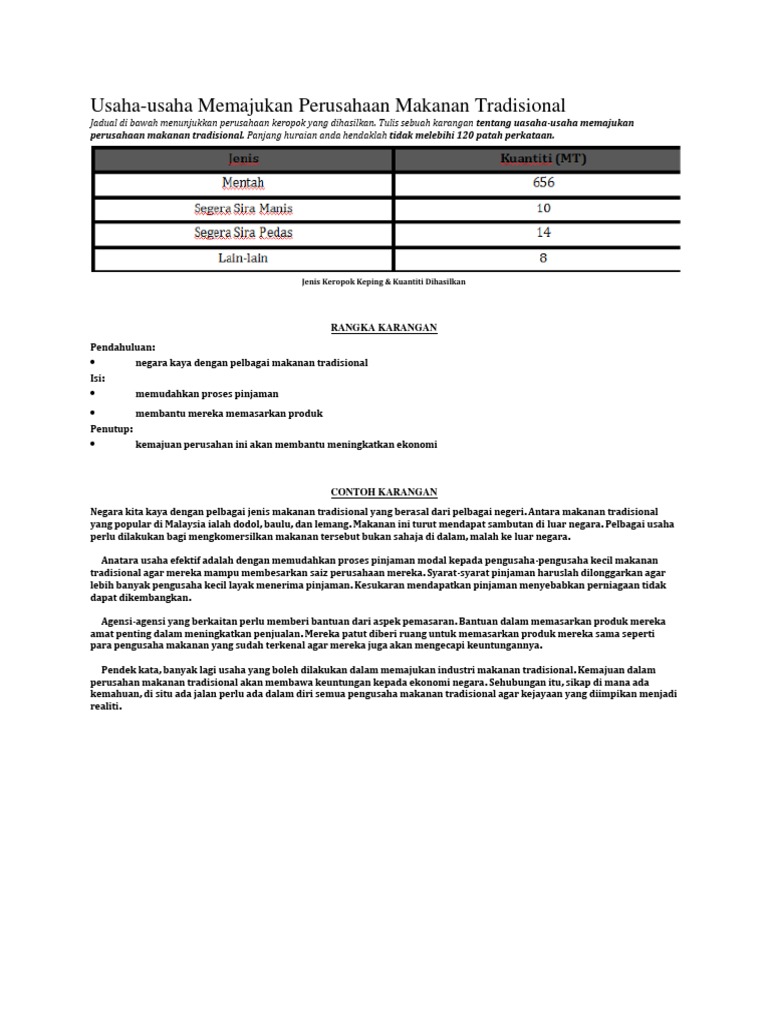 Contoh Karangan Pmr Usaha Usaha Memajukan Perusahaan Makanan Tradisional