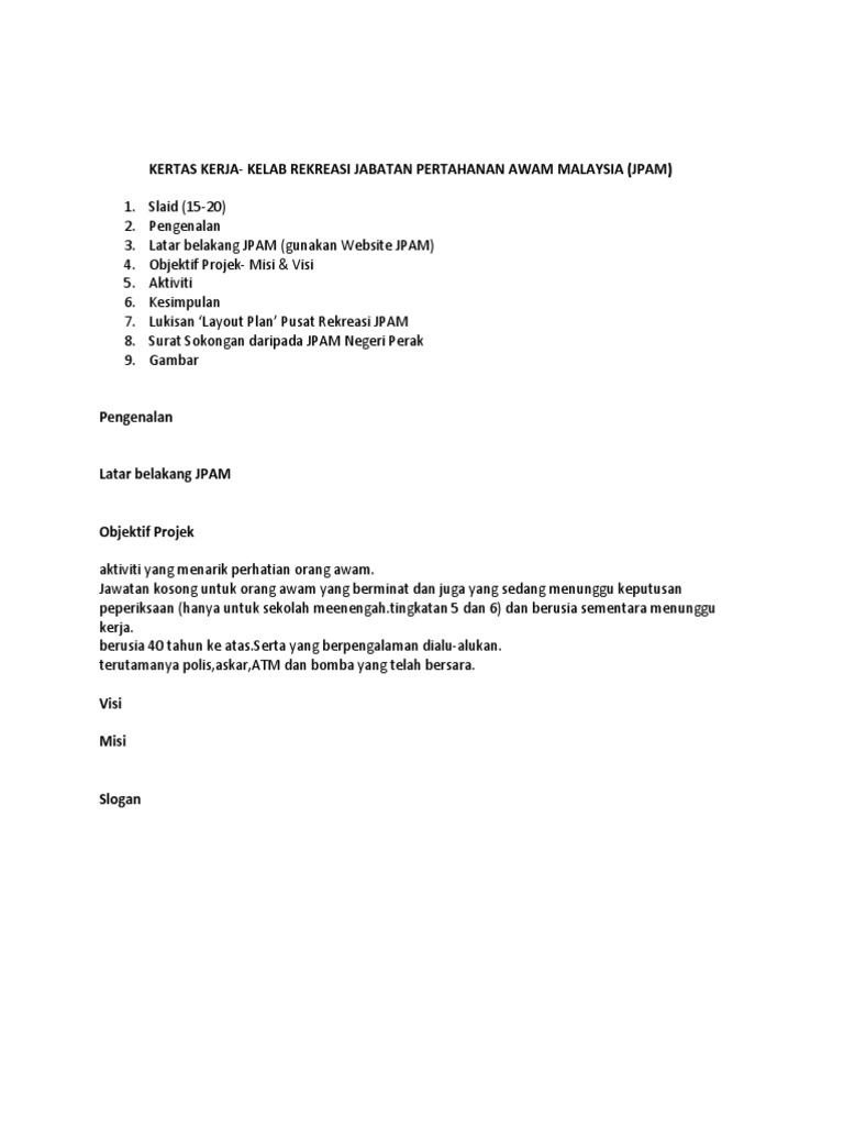 Kelab Rekreasi Jpam Ipoh Kertas Kerja 1